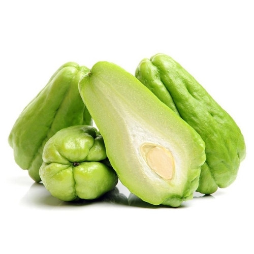 a mild, pear-shaped gourd from the Cucurbitaceae family (like cucumbers & squash) with pale green skin, white crisp flesh, and a single edible seed